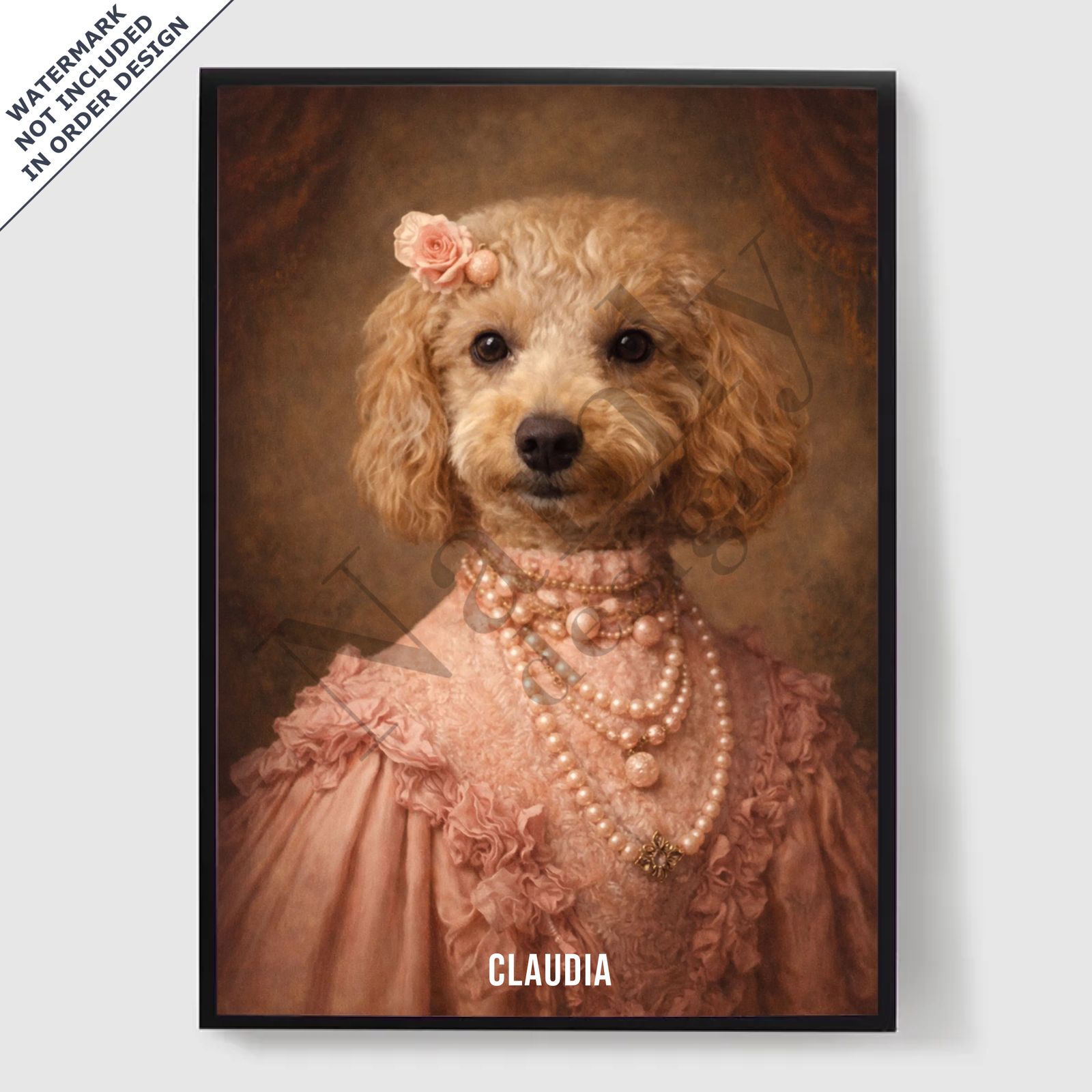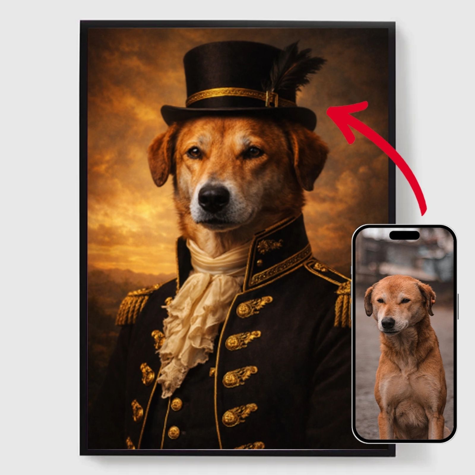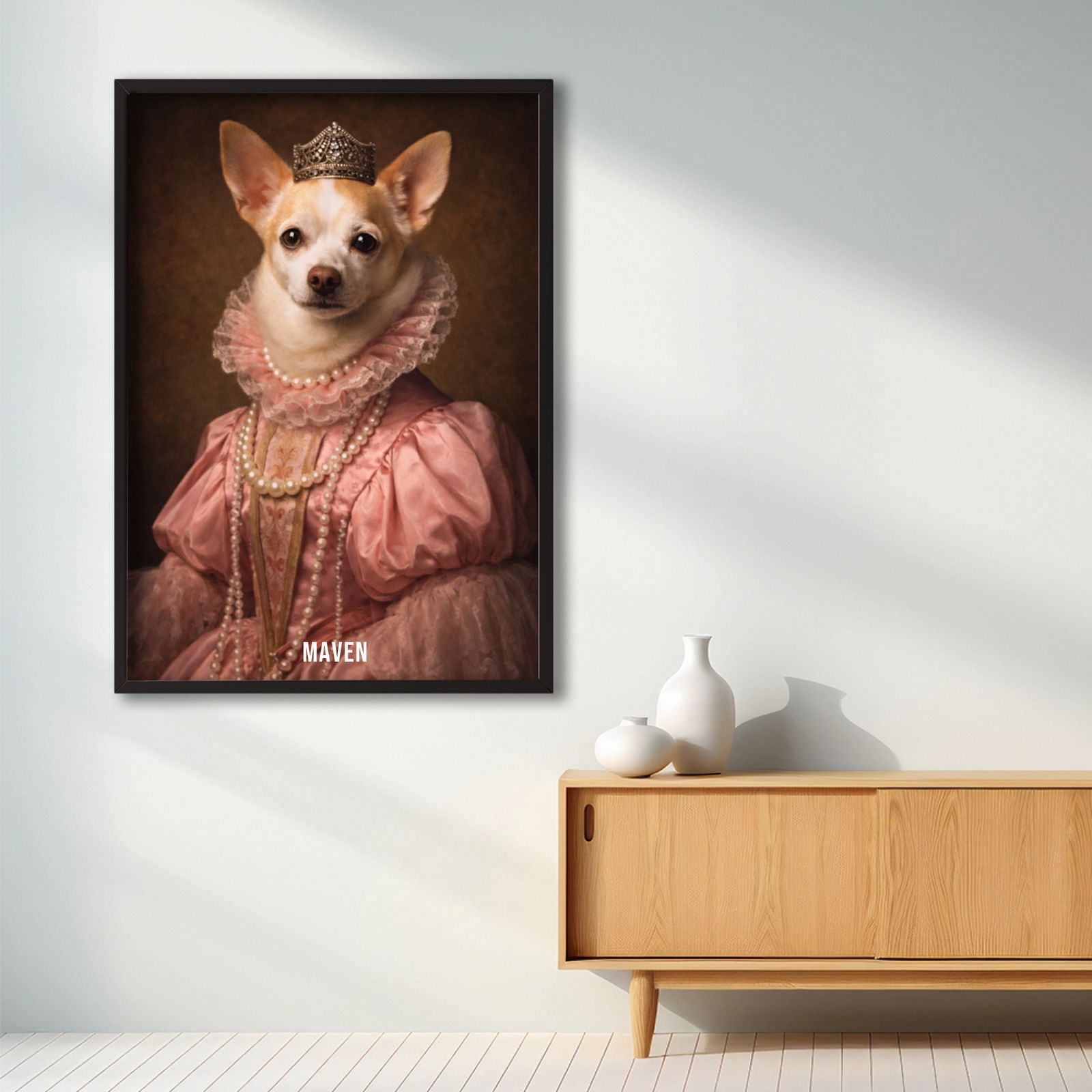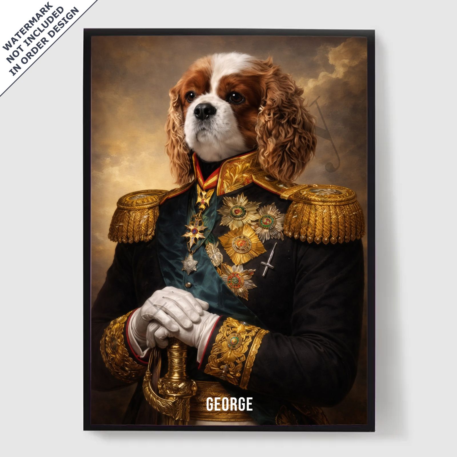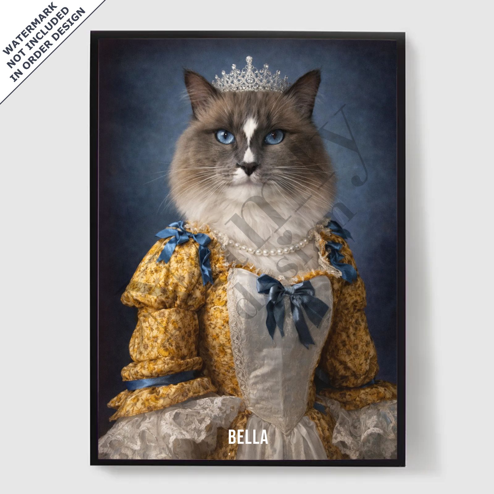 Våre personaliserte kongelige kjæledyrportrett-plakater er en unik måte å vise frem kjæledyrets personlighet på. Hvert stykke er skreddersydd, og bringer frem en kongelig side av kjæledyret ditt som du vil elske. Disse plakatene er perfekte gaver til dyreelskere eller en sjarmerende tillegg til hjemmeinnredningen din. Med høykvalitets utskrifter og forskjellige størrelser tilgjengelig, er det enklere enn noensinne å finne det perfekte portrettet.