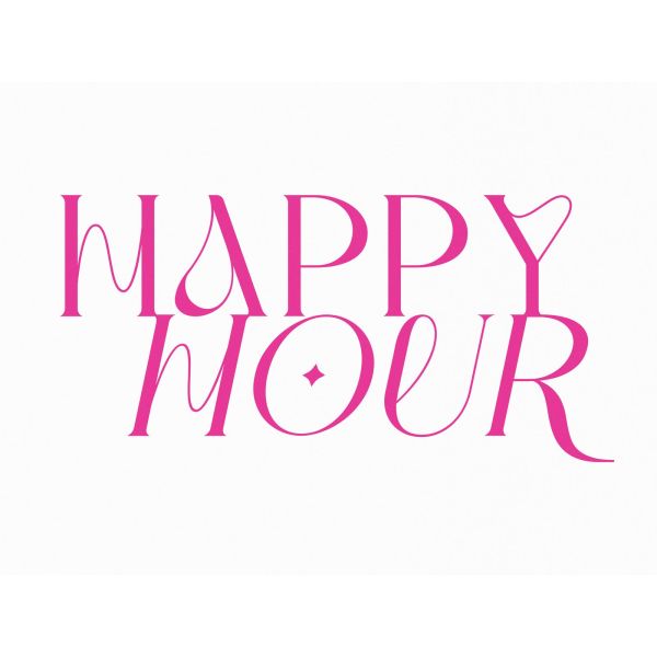 Denne plakaten har den dristige teksten 'Happy Hour' i livlig rosa. En stilig tillegg til ethvert rom, den tilfører et hint av glede og moderne design. Produktet inneholder kun en plakat.